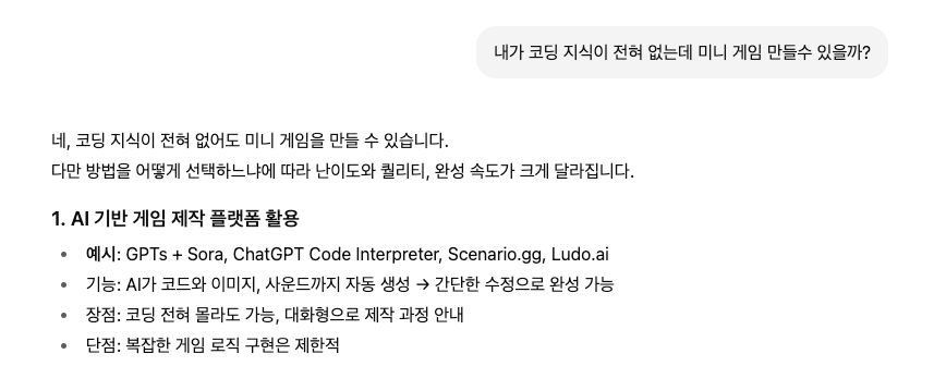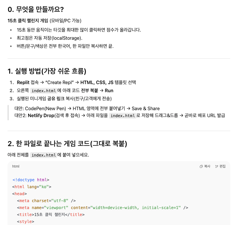 1. GPT-5 에게 간단한 미니 게임을 만들고 싶다고 요청