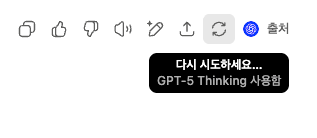 쉬운 문제라고 생각했는지 GPT 5 모델에게바로 답변을 받을 수 있었어요.