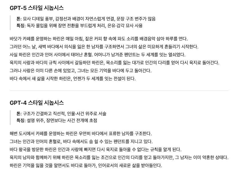 GPT-4와 GPT-5 의 문장 스타일이 어떻게 다른지 함께 읽어보실까요? 😃