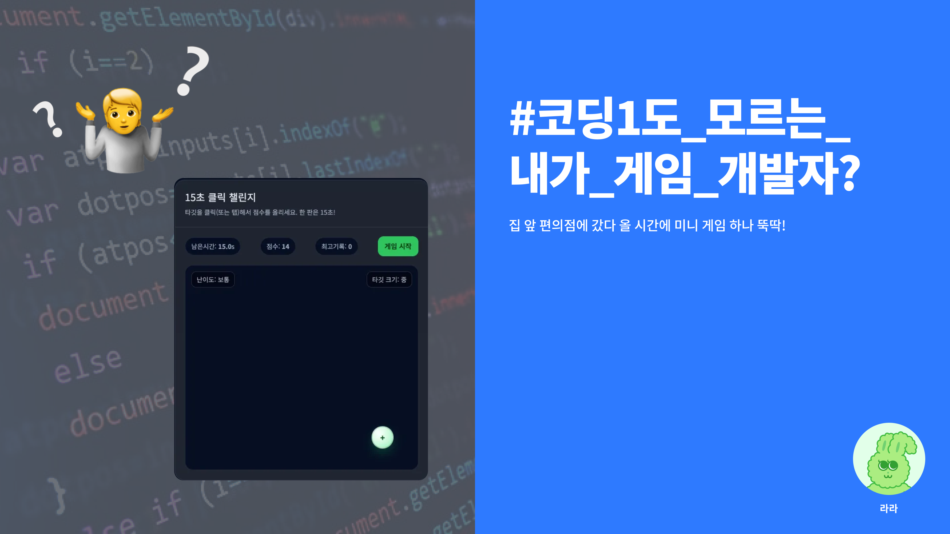 집 앞 편의점에 갔다 올 시간에 미니 게임 하나를 뚝딱 만들 수 있다면 믿으시겠어요? 🙊