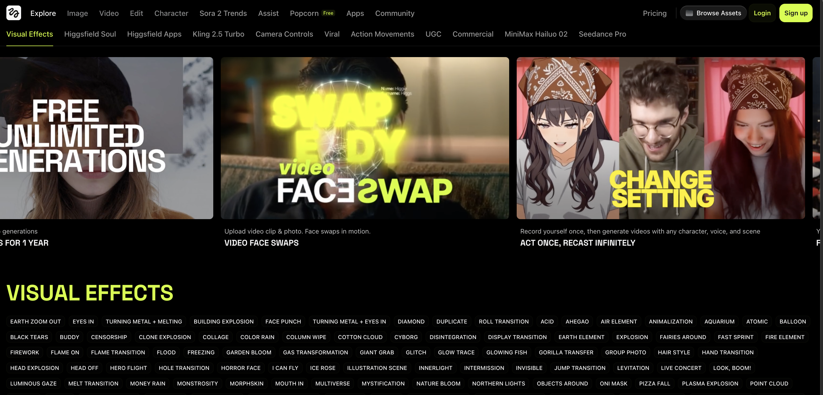 힉스필드 메인페이지에 들어가면, 새로 공개된 Face Swap과 Character Swap 기능을 메인에서 확인할 수 있습니다!