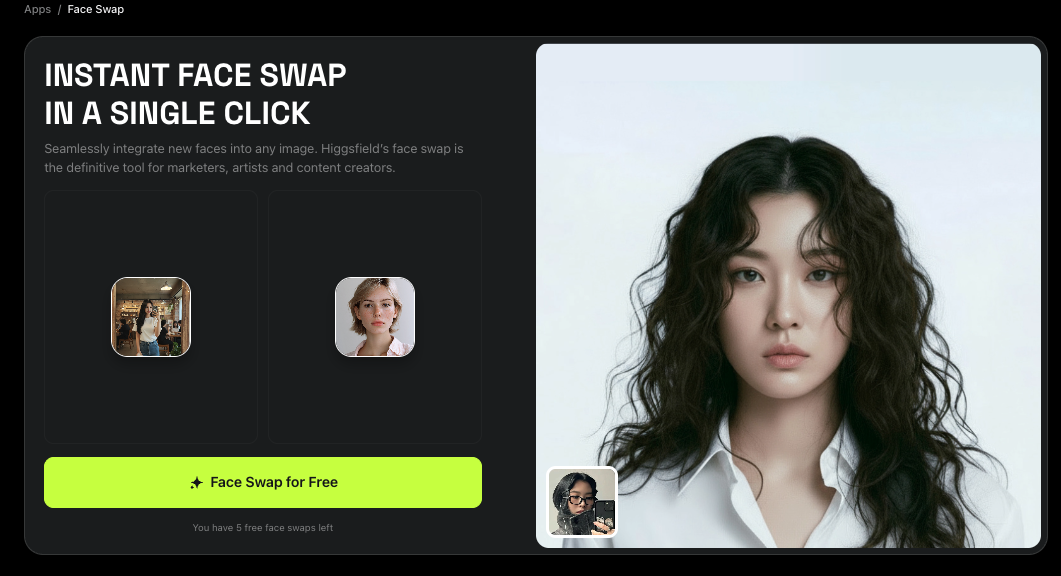Face Swap 이미지 생성 기능을 5회 무료로 이용할 수 있어요! |