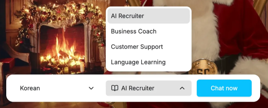 모드는 AI 면접관, 비즈니스 코치, 고객 응대, 언어 선생님 등 4가지가 있어요. |
