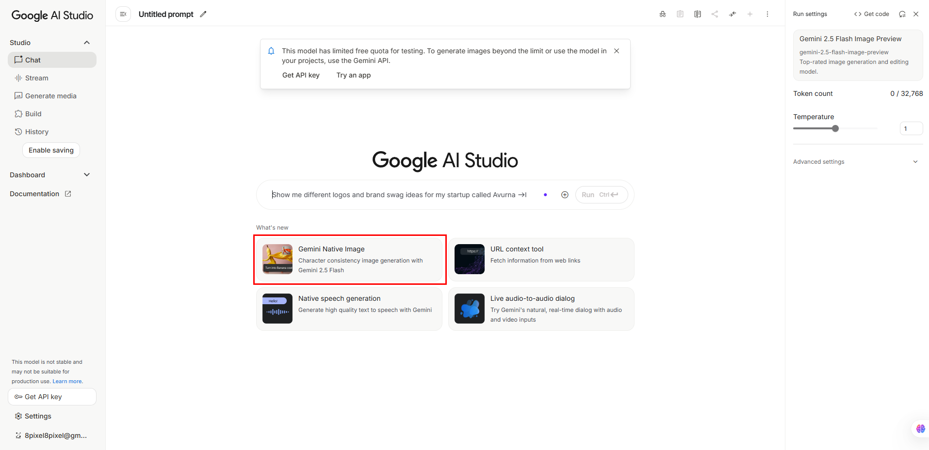 • 구글 AI 스튜디오(https://aistudio.google.com/prompts/new_chat) 에 들어가 빨간 박스를 클릭하면 나노바나나로 선택 된다고 합니다!