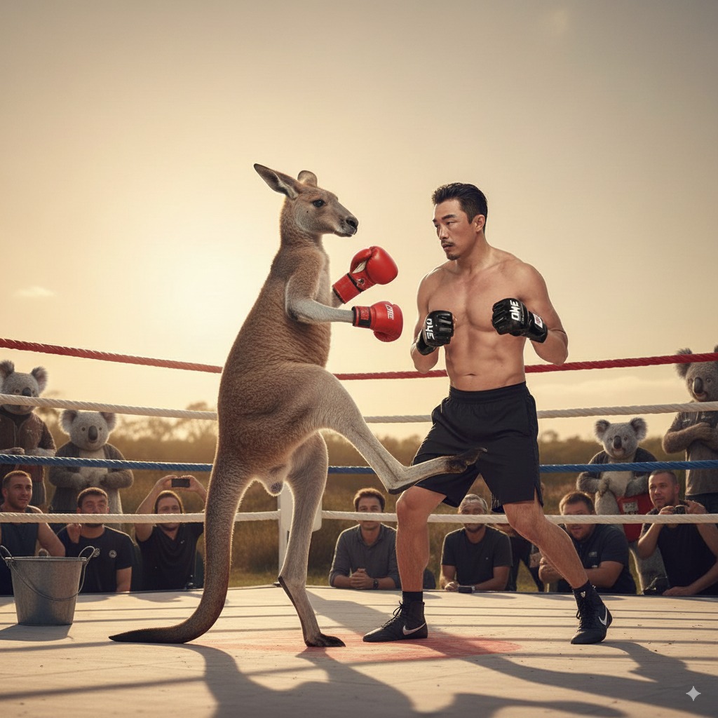 이번엔 나노바나나의 공식 런칭된 구글 Gemini 2.5 플래시를 이용해서 이미지를 만들어볼게요! 아저씨 추성훈과 호주 캥거루가 격투하는 장면, 궁금하지않나요? 당장 만들어보죠 ㅎㅎ