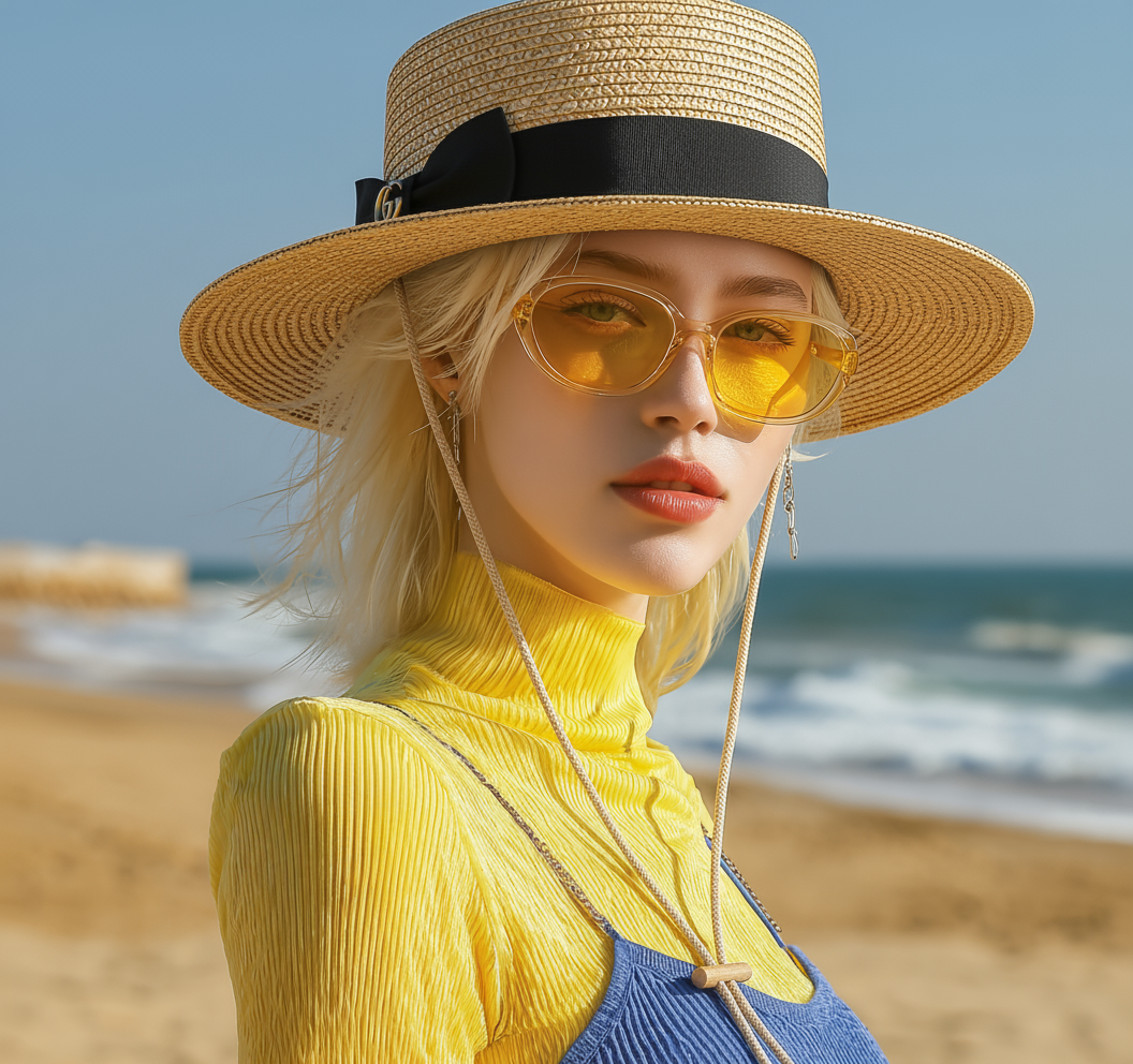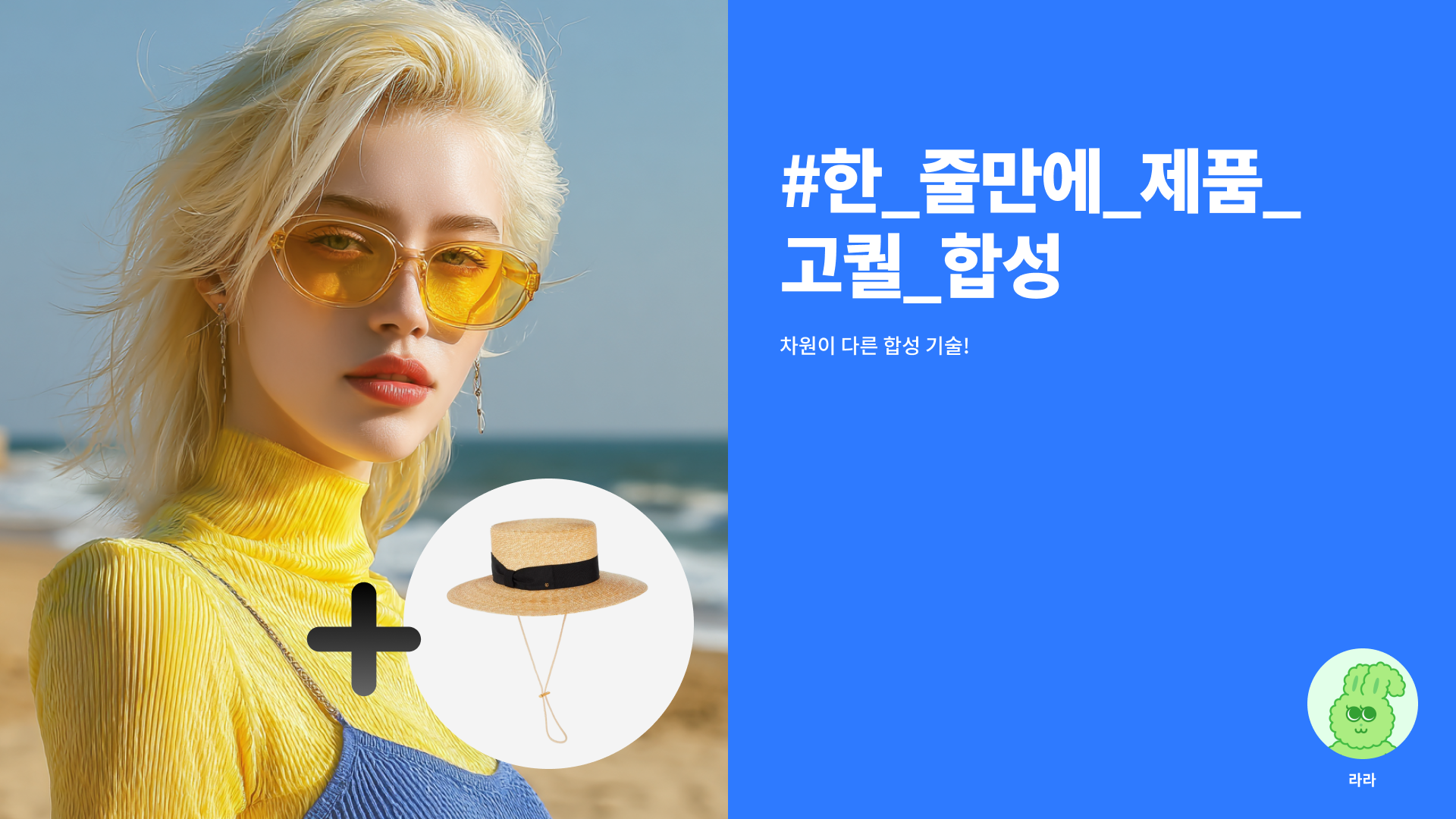왼쪽은 제가 미드저니로 생성한 아름다운 외국인 모델! 오른쪽은 구찌의 짚신 모자 사진입니다.