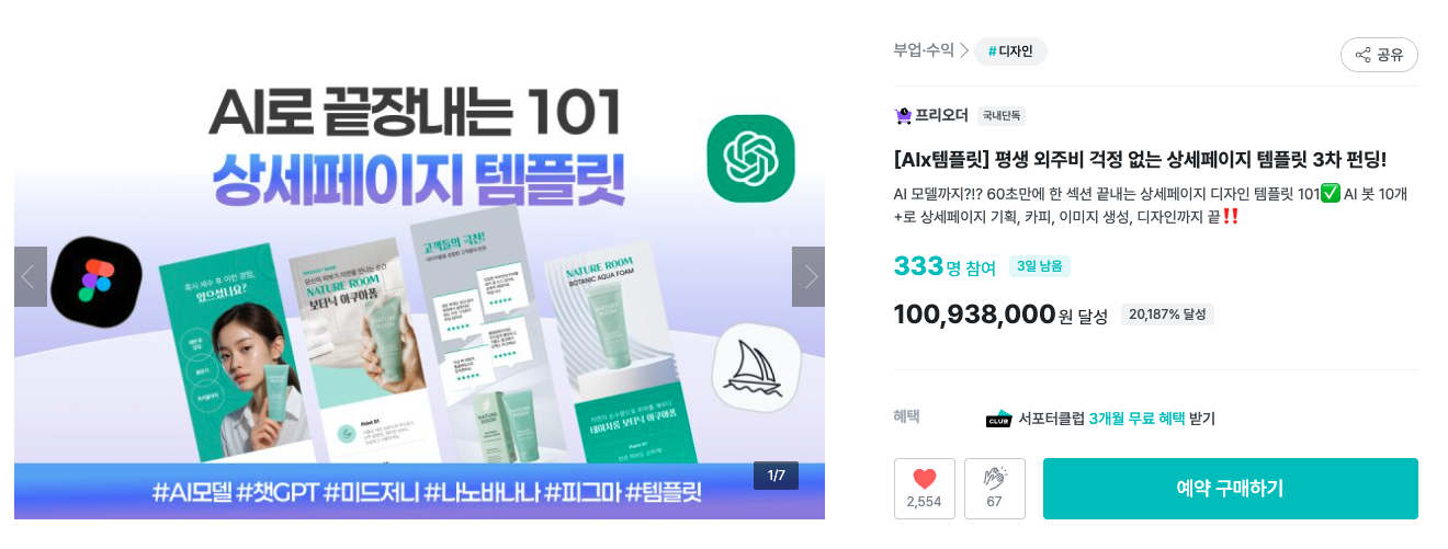와디즈 역대 상세페이지 템플릿 1위, 누적 1.6억 이상을 달성한