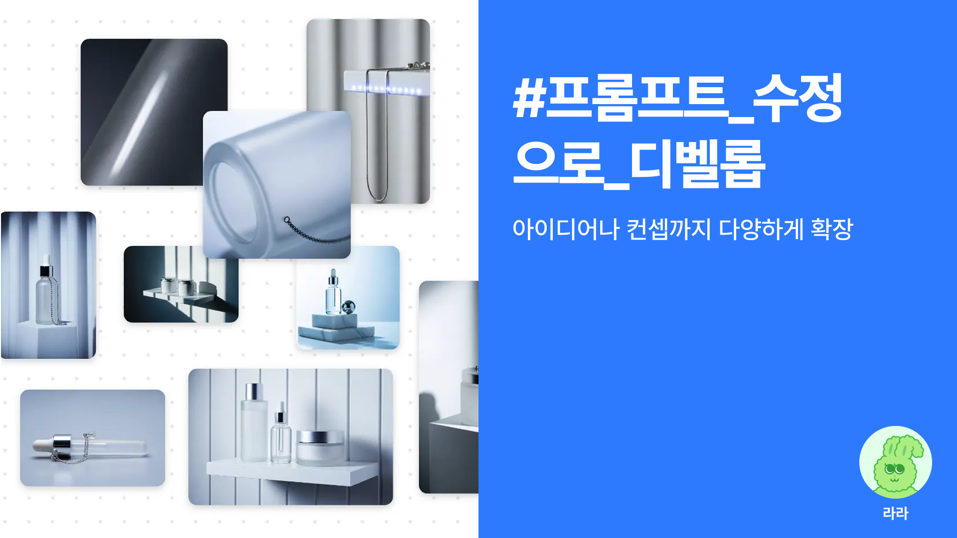 프롬프트를 살짝만 바꿔주면 아이디어나 컨셉까지 다양하게 확장 가능!