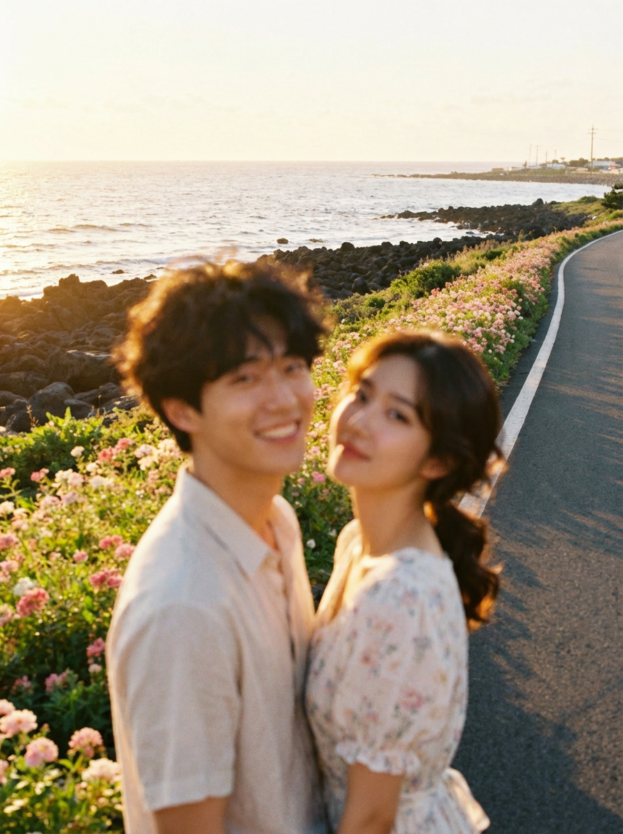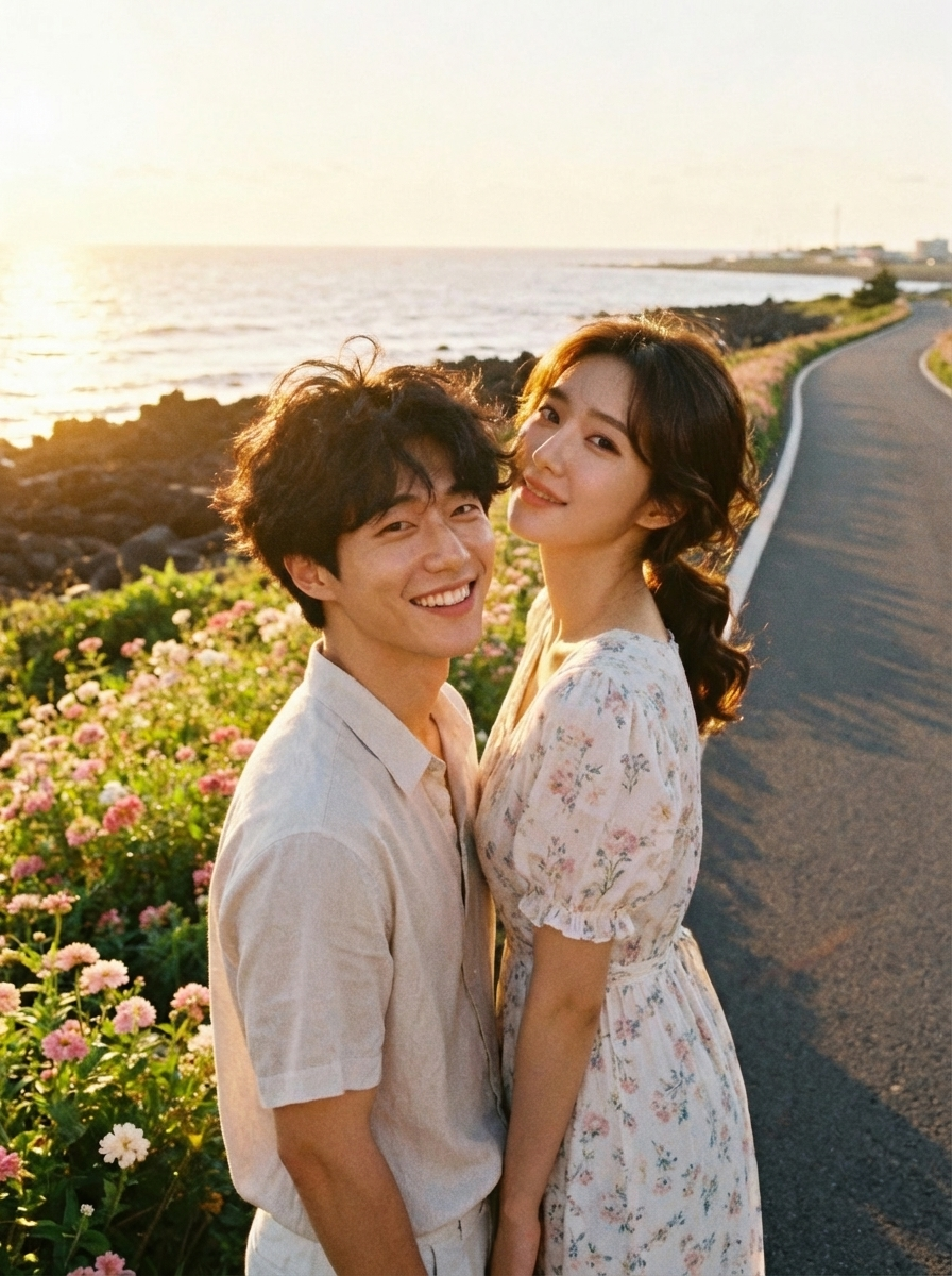 실제 카메라인 것처럼 초점을 자유롭게 조절할 수 있다길래, 예시로 선남선녀 AI 커플 사진을 한 장 가져와봤습니다! |