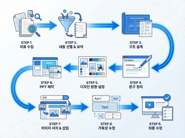 에디터가 잡아본 PPT 제작 과정만 해도 대략 9단계 정도 였는데요.