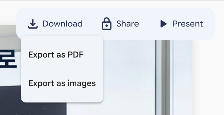 완성된 PPT는 PDF랑 이미지, 두 가지 파일로 다운로드 가능해요.