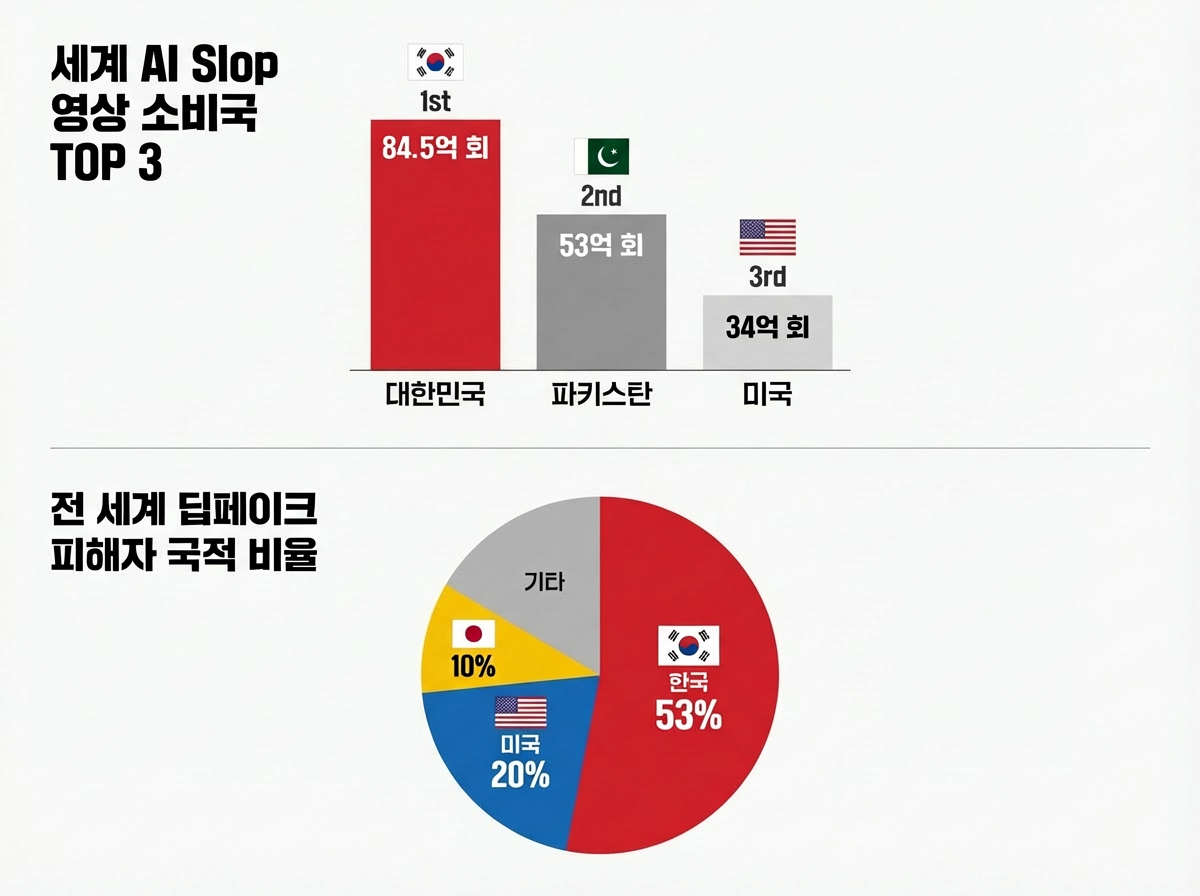 한국이 ‘저질 AI 콘텐츠 소비’에서도 1위를 기록했다는 씁쓸한 결과! |
