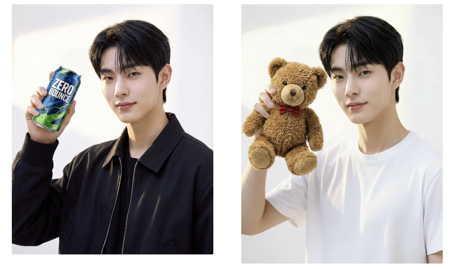 캔이든 인형이든, 모델이 처음부터 들고 있었던 것처럼 감쪽같이 수정됐어요.