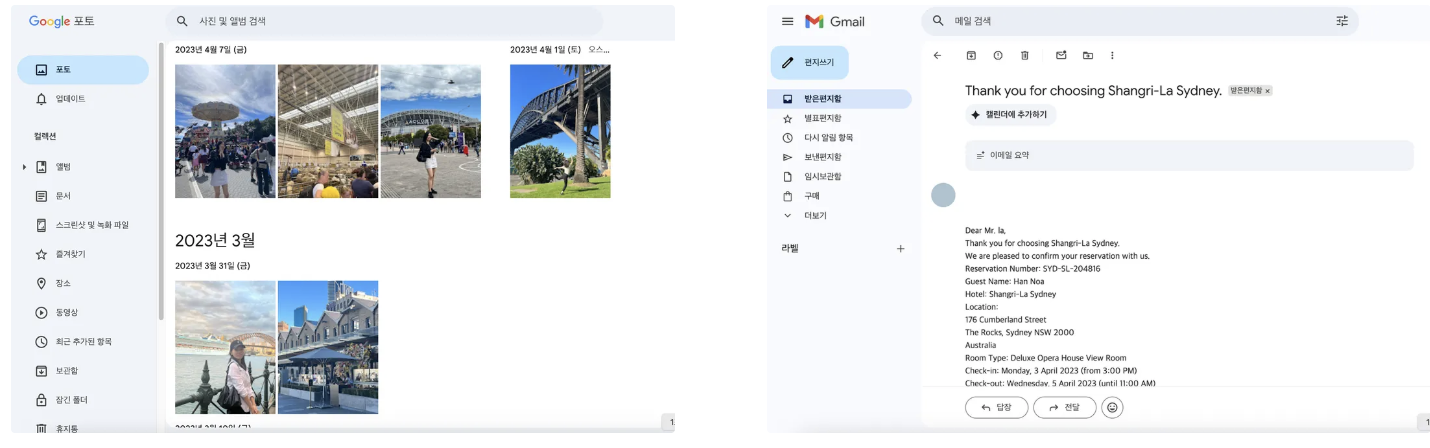 제가 예전에 묵었던 숙소 예약 메일부터 구글 포토에 잠들어 있던 수백 장의 사진까지… 지가 알아서 싹 스캔하더니 제 취향을 파악하더라고요. |