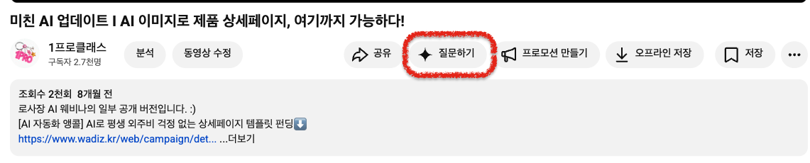 이렇게 영상 아래 제미나이 표시로 새로운 아이콘이 추가된 게 보이시나요?