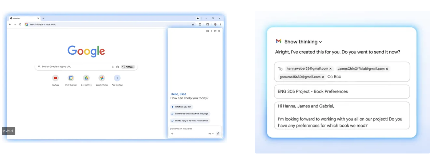 - 내부 코드 프리패스 - 다른 AI는 화면을 눈으로 보듯 추측해서 클릭하지만, 크롬은 제미나이가 브라우저 내부 코드를 직접 읽어요. 오류가 날 수가 없죠