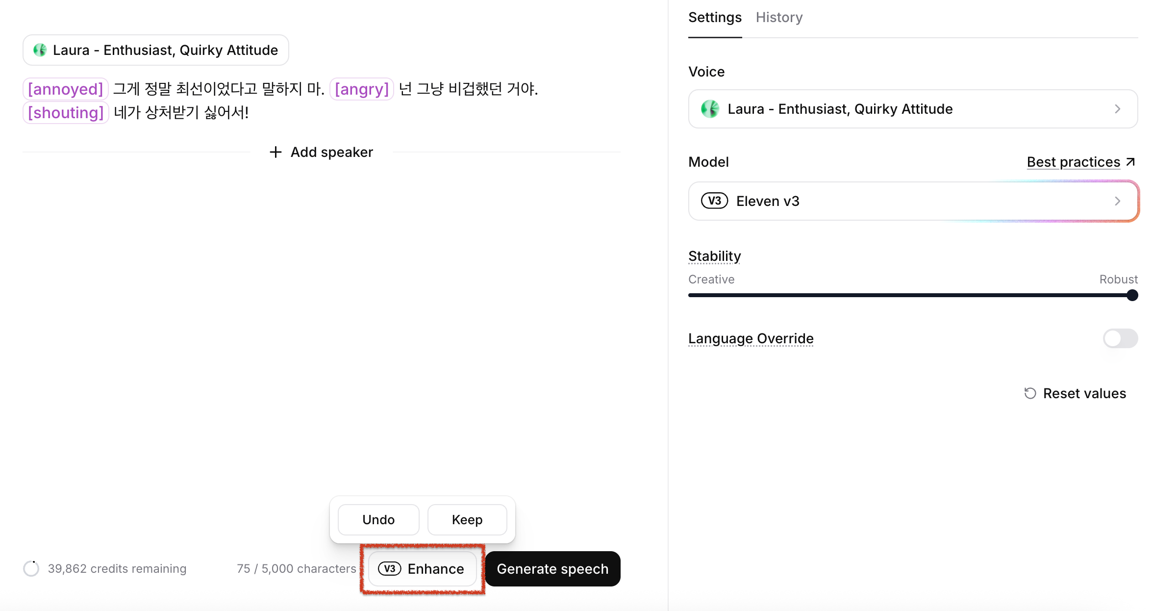 비결은 바로 2026년 2월 2일에 업데이트된 따끈따끈한 신상, Eleven v3 모델 덕분입니다. 🔥 |