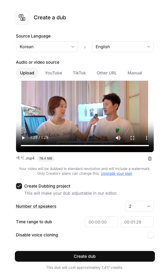 - 목소리 구분 & 복제: AI가 영상 속 두 분의 목소리를 기가 막히게 구분한 뒤, 단순히 번역만 하는 게 아니라 원본 특유의 말투랑 톤을 그대~로 살려서 외국어를 하게 만듬