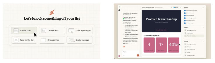 하지만 이번 업데이트의 진짜 핵심은, 계획 → 실행 → 결과 생성까지 이어지는 ‘에이전트형 작업 흐름’이 현실화되고 있다는 점입니다.