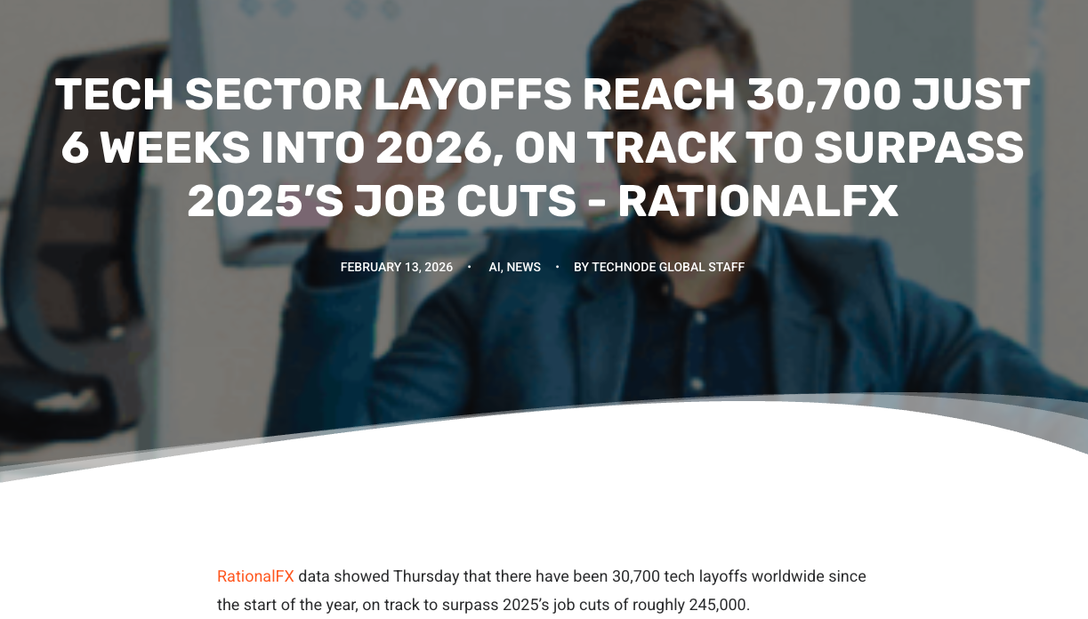 [1] TechNode Global, “Tech sector layoffs reach 30,700 just 6 weeks into 2026, on track to surpass 2025’s job cuts,” Feb 13, 2026