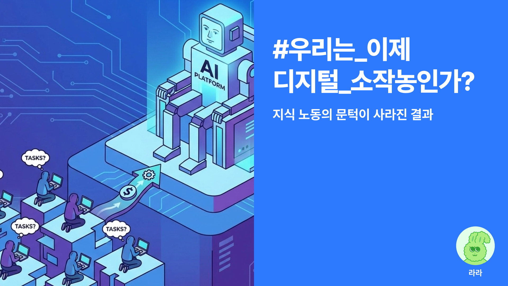 이렇게 지식 노동의 문턱이 낮아지다 못해 아예 사라지면서, 우리가 처한 진짜 위기는 바로 '디지털 소작농'이 되는 거예요. 🌾 |