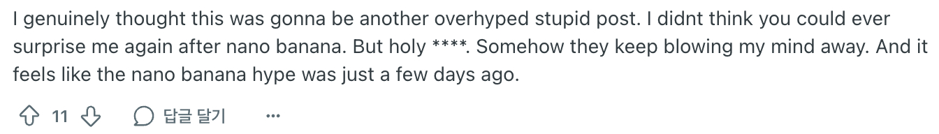 “나노바나나 이후에 나를 이렇게까지 놀라게 만드는 건 더 이상 없을 줄 알았는데 …ㄷㄷㄷ”