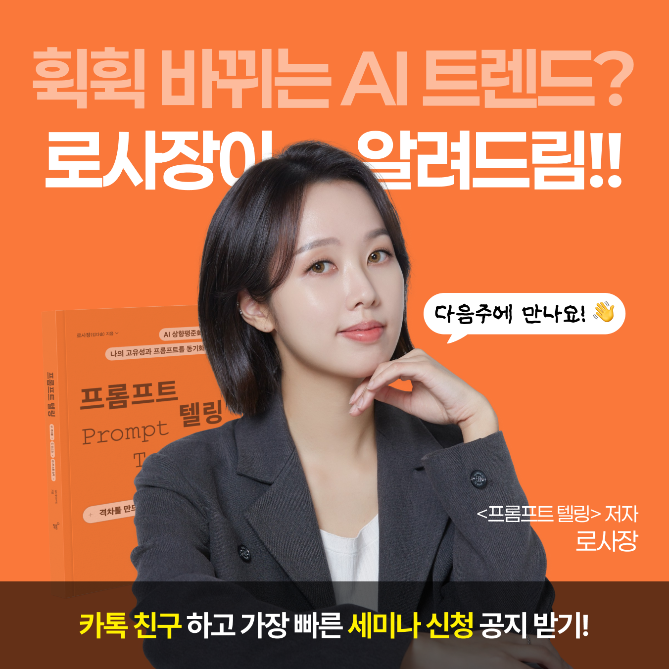 <프롬프트텔링> 저자이자 AI 전문가 '로사장'이 드디어 ✨첫 번째 오프라인 세미나✨를 엽니다!
