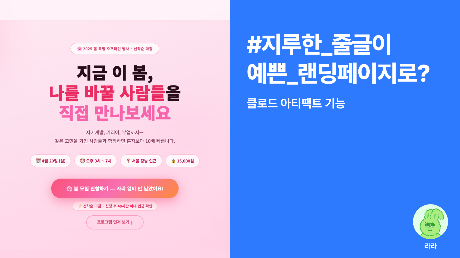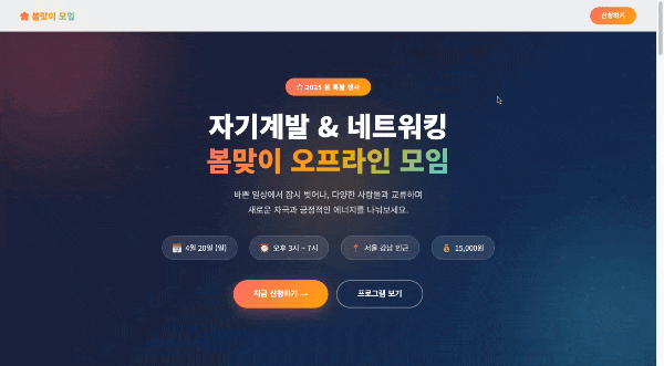 자, 그럼 이 딱딱한 텍스트를 사람들이 클릭하고 싶어 안달 나는 '참가 신청 랜딩페이지'로 싹 바꿔볼게요!