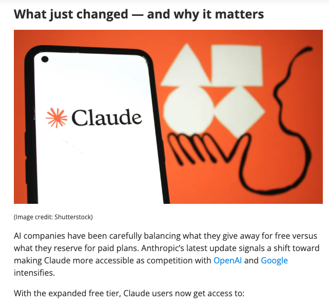 (기사/이미지 출처 : Tom’s Guide. “Claude just made two of its best features free — here’s how to use Projects and Artifacts.” 2026.)