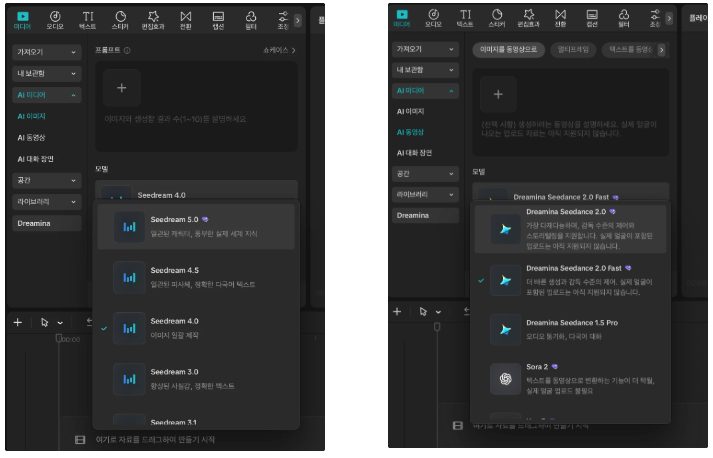 자, 이렇듯 시댄스는 어떤 방식이든 프롬프트 한 방에 멋진 결과물을 뽑아내는 '통합 멀티모달 구조'가 진짜 강점이에요. 더 대박인 건, 이렇게 만든 영상들을 창 한 번 끄지 않고 캡컷 타임라인에 바로 올려서 편집까지 논스톱으로 끝낼 수 있다는 것!! 워크플로우가 미치도록 편해진 거죠!