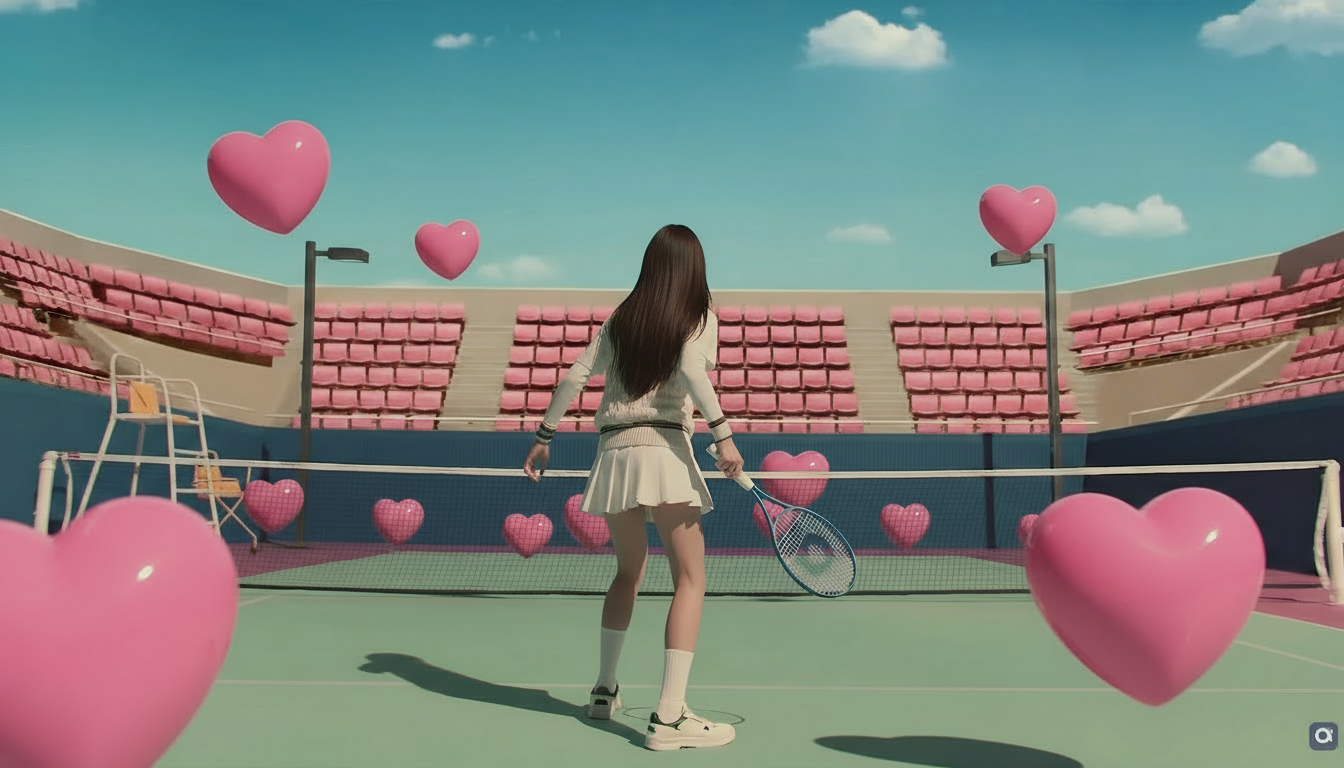 📝 "하트가 둥실둥실 떠다니고 자막이 자연스럽게 등장해줘" |