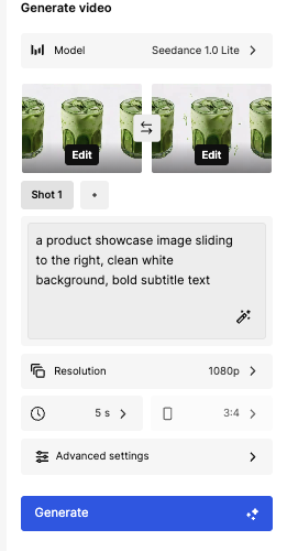 - 자막이 없는 이미지로 시작 프레임(Start Frame)을 잡는다